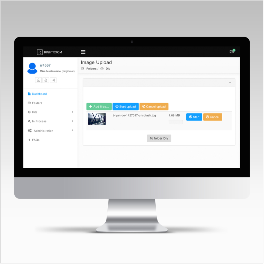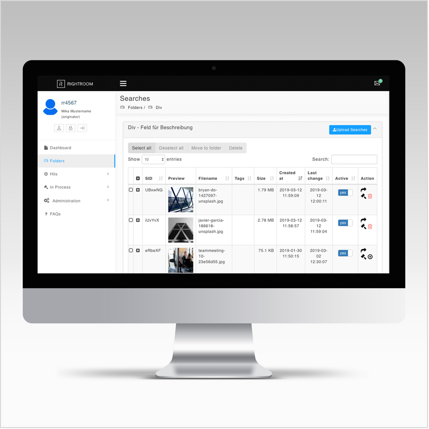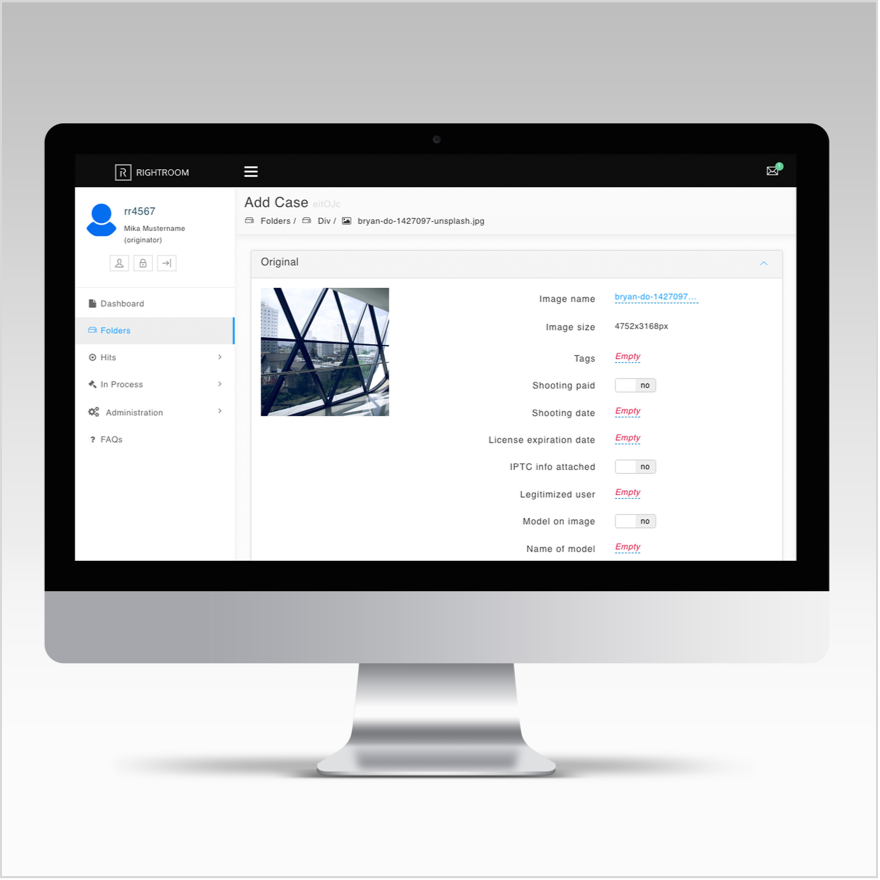 App.creativerights erlaubt es in nur wenigen Schritten Bilder hochzuladen. Die Prüfung erfolgt automatisch innerhalb von 24 Stunden. Lizenzverstöße werden von uns ermittelt und die entsprechenden Bilder markiert. Du entscheidest selbst, ob wir aktiv werden sollen ...